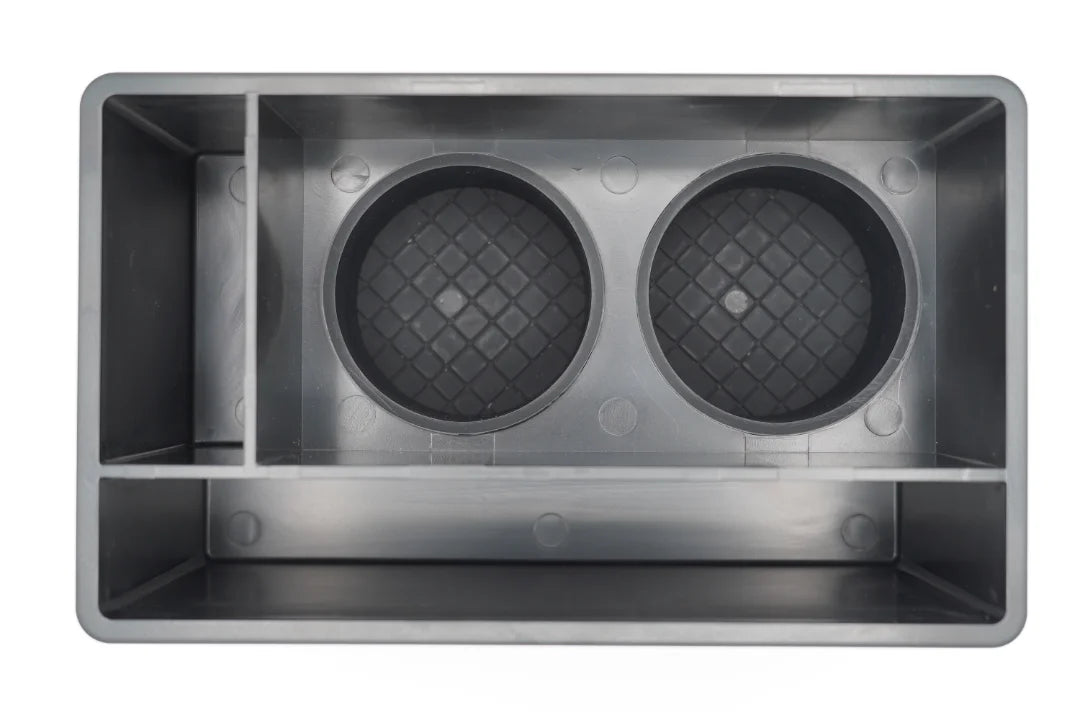 The only console on the market with molded rubber inserts. Prevents "Yeti rattle" and secures drinks better than shallow 3D-printed alternatives.